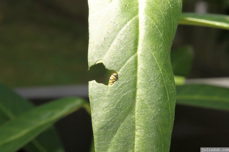 Monarch Caterpillar eating Swan Plant