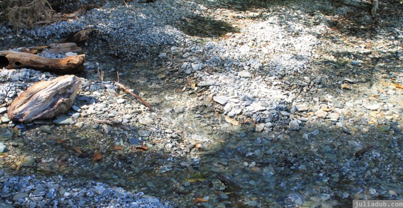Icey stream running across the stones into lake